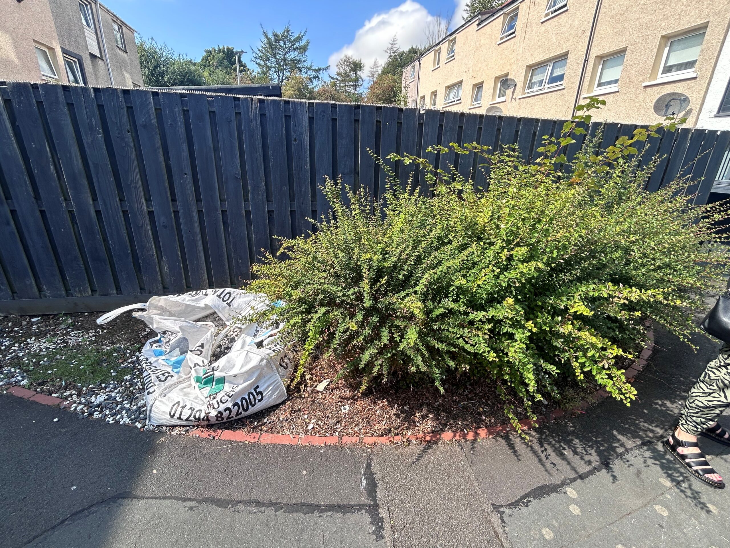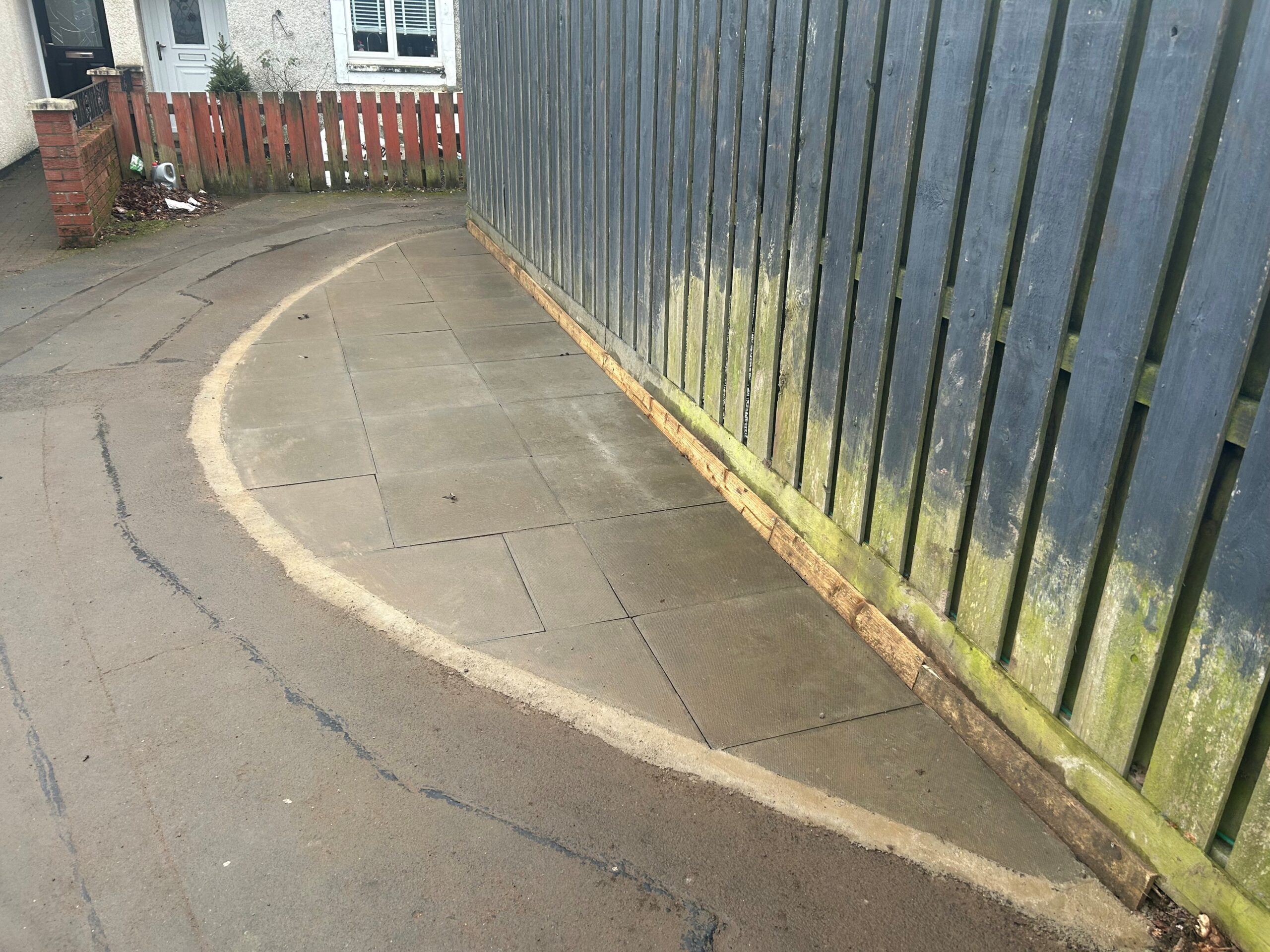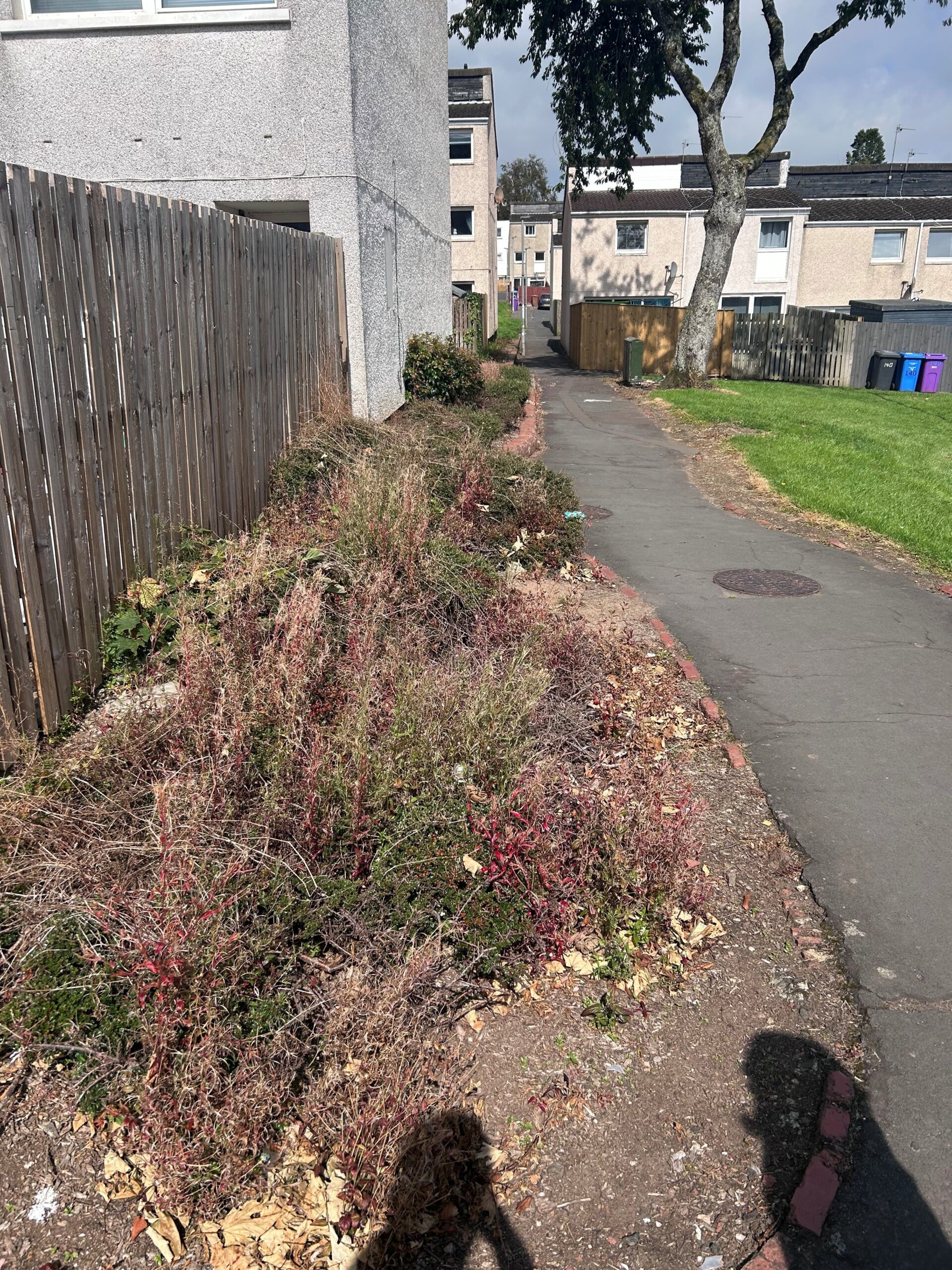 Overgrown shrubs were removed and the area was slabbed to create a clear space for bin storage, after feedback about bins blocking a driveway.