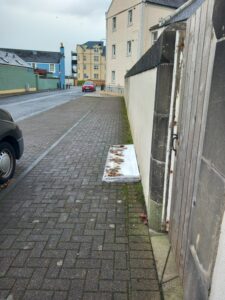- College Street: Two missing water mains toby access covers spotted on pavements – reported to the Roads Department.