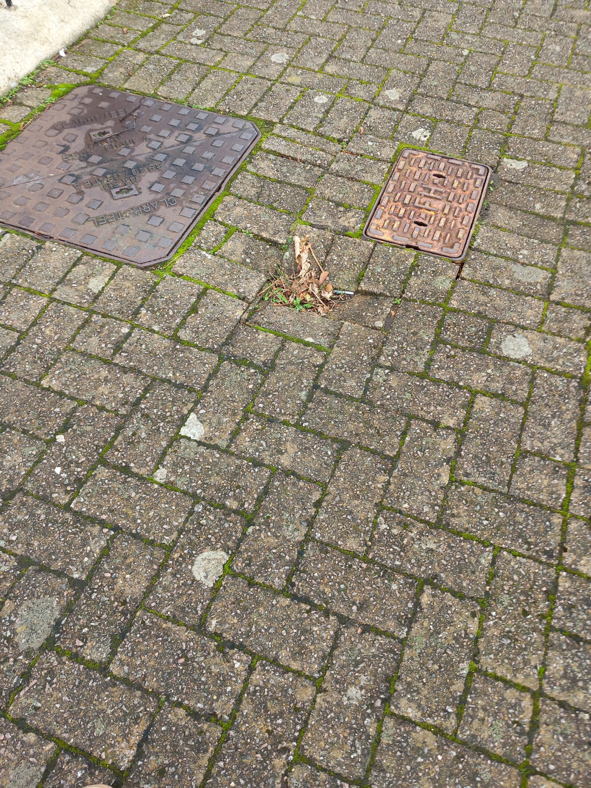 - College Street: Two missing water mains toby access covers spotted on pavements – reported to the Roads Department.